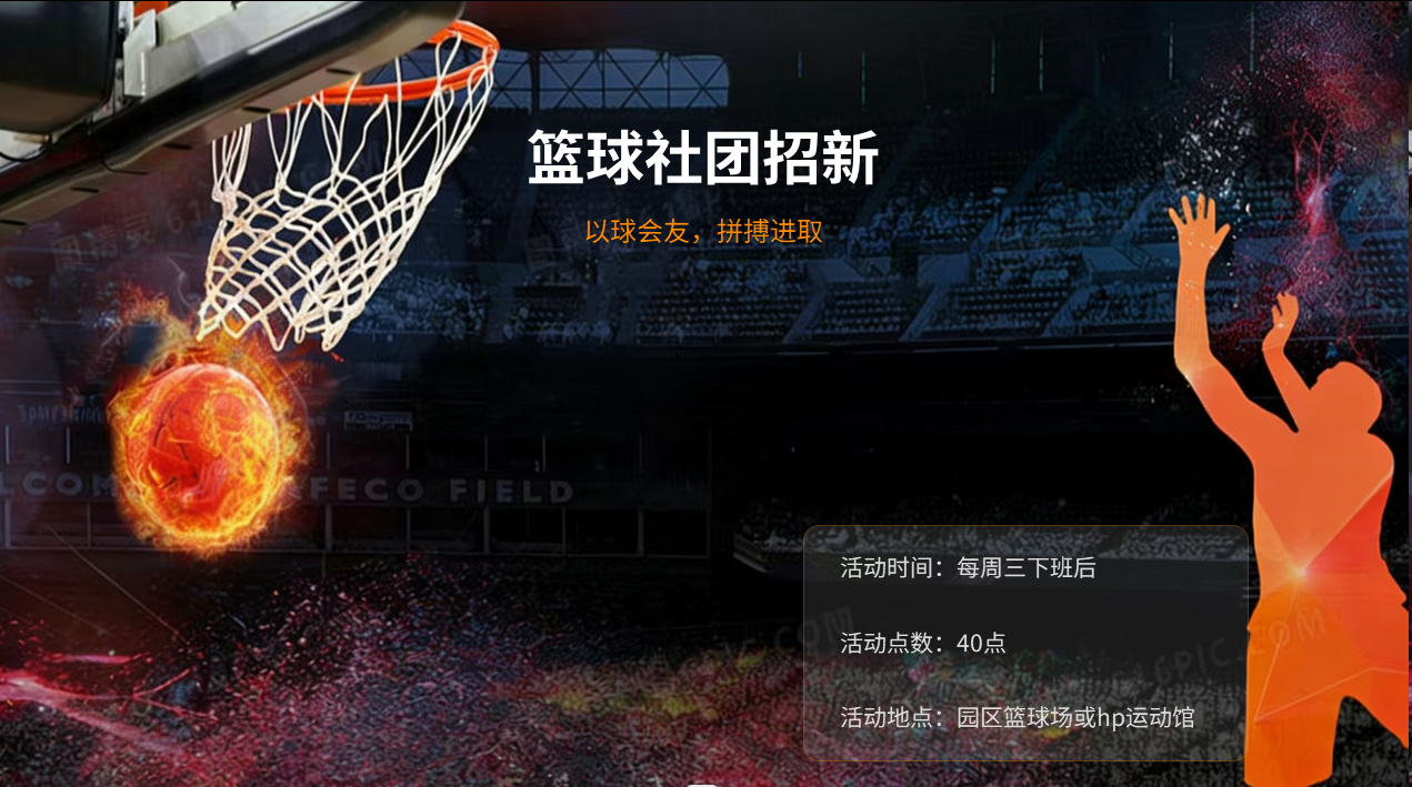 篮球社期待你的加入,庆生会当天报名,即可领取专属篮球周边礼品~